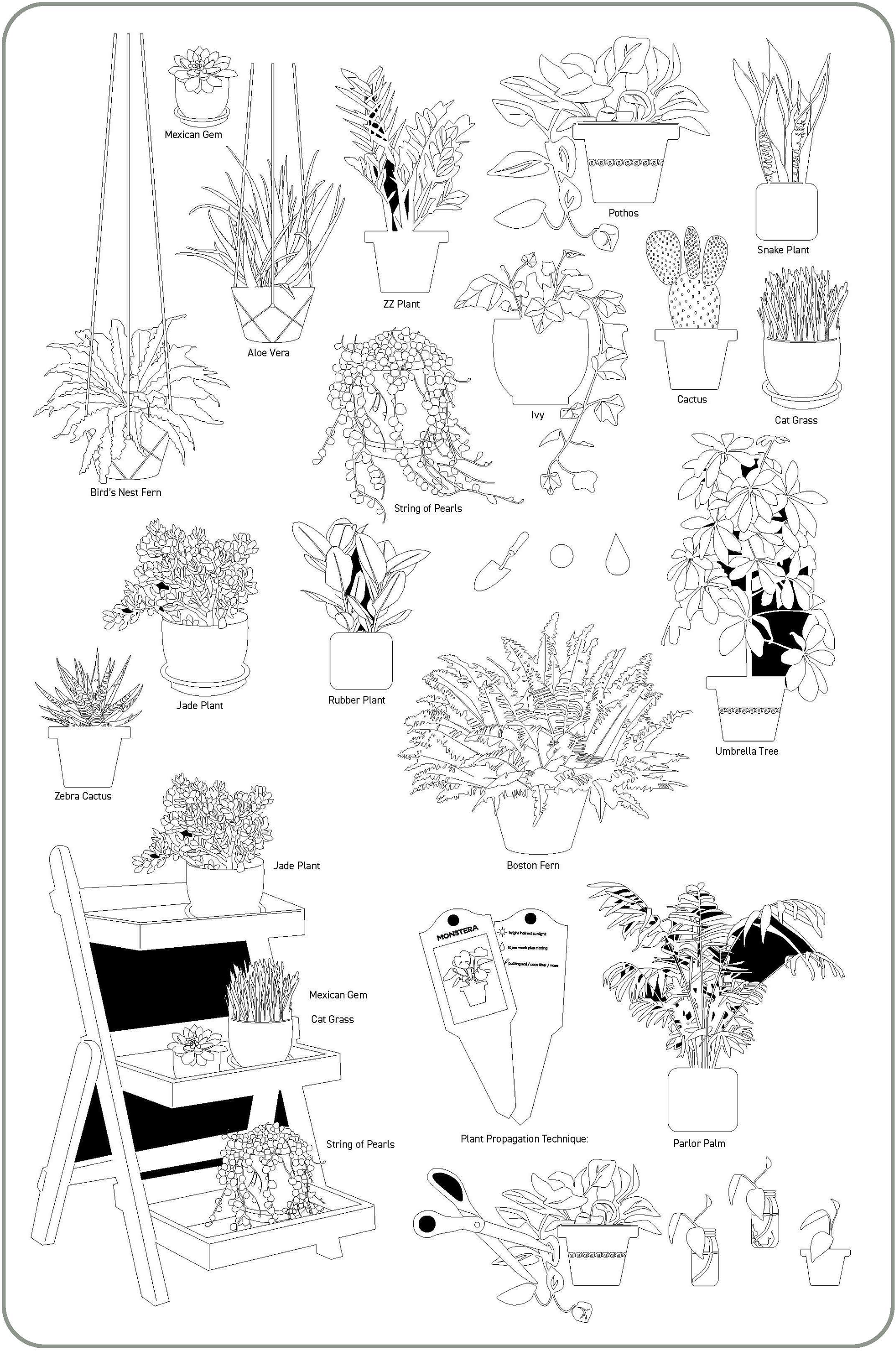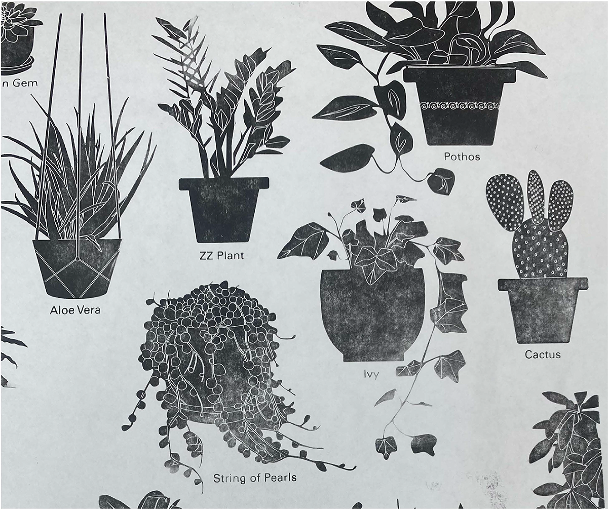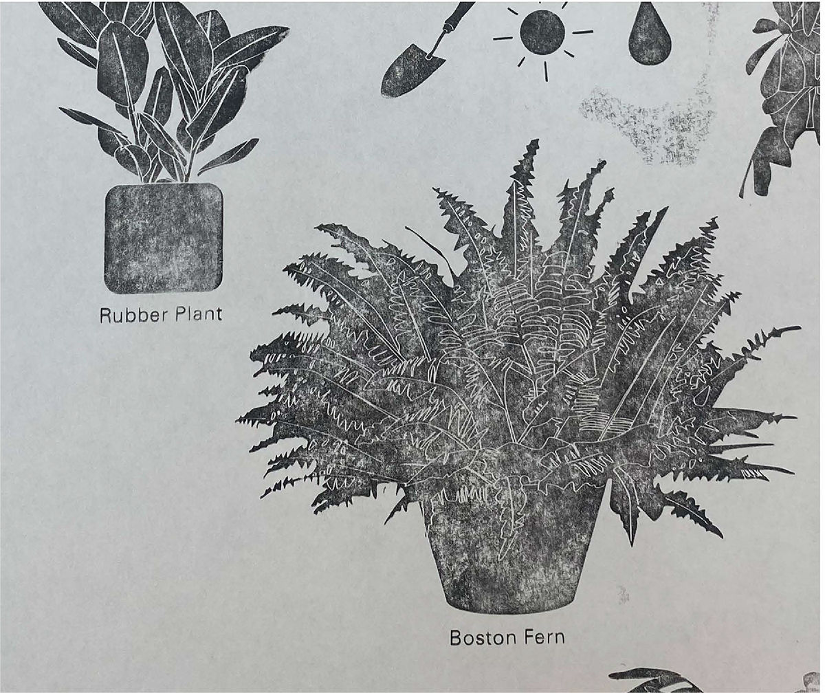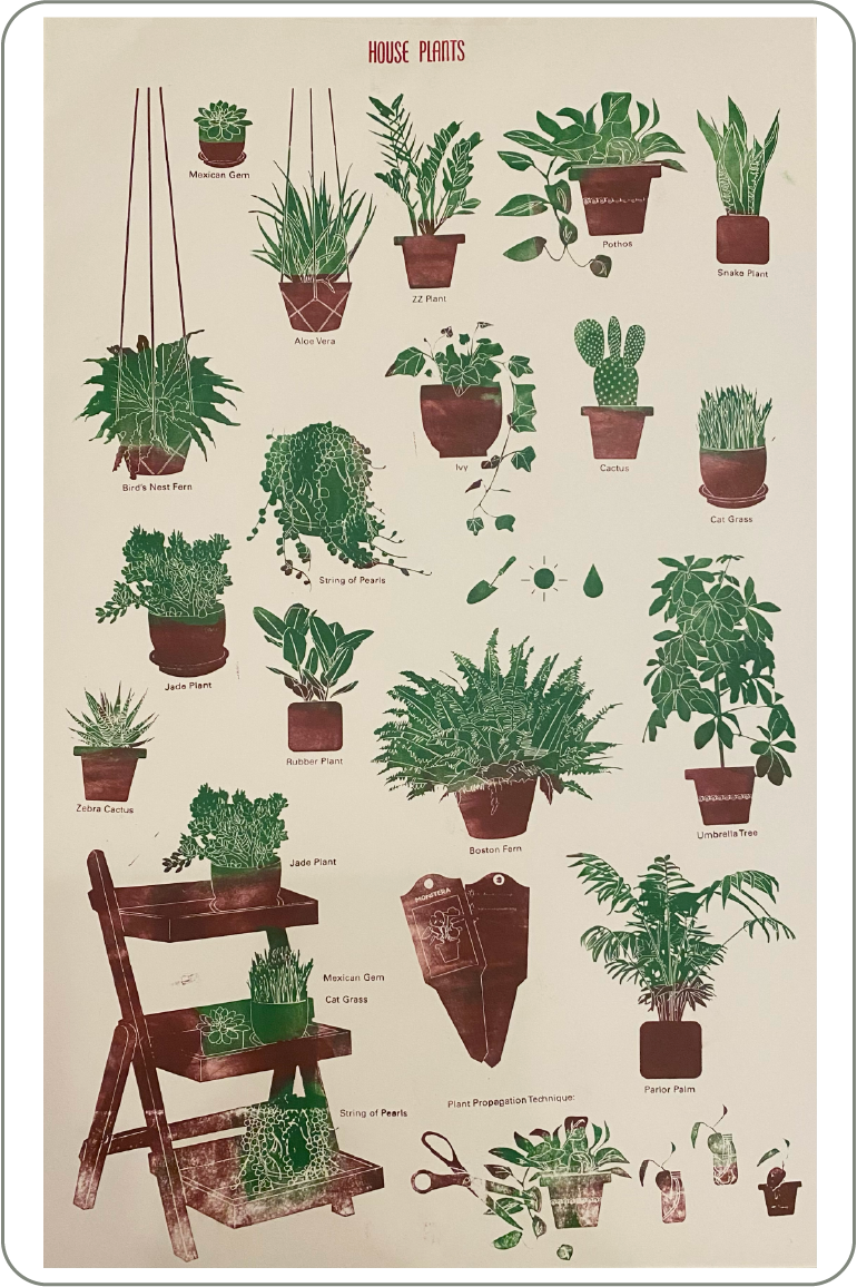 Here is the Illustrator file where I designed the house plants next to the final poster print. I made nine copies of this poster on the letterpress in addition to the 2 book copies.
