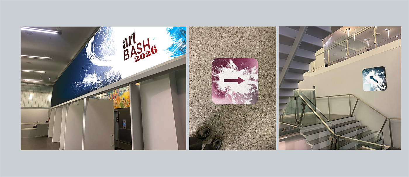 ArtBash identity including one main event poster, 7 due date posters, social media & OOH advertising, wayfinding.