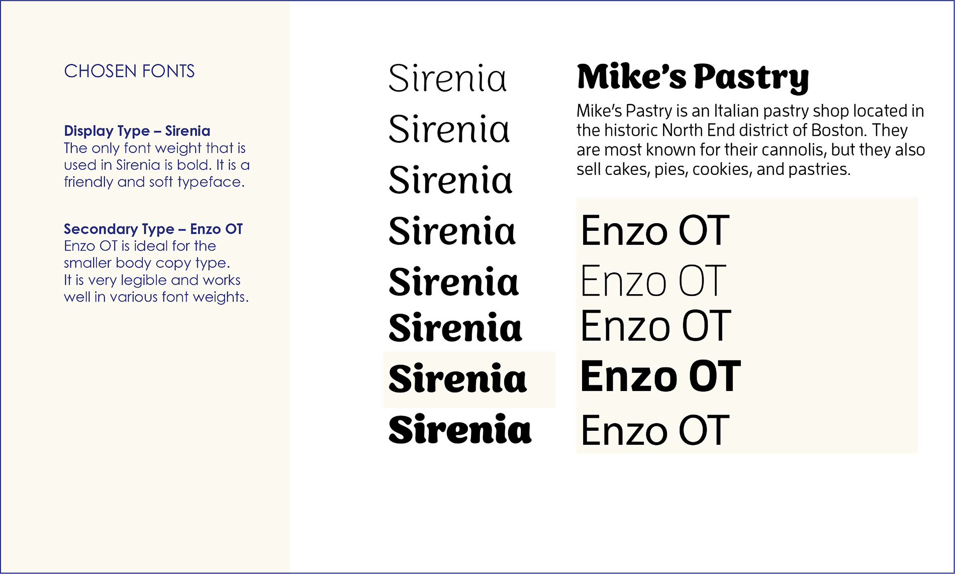 They are known for their world-famous cannolis and classic pastries. The aim of this imagined redesign was to modernize
